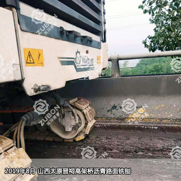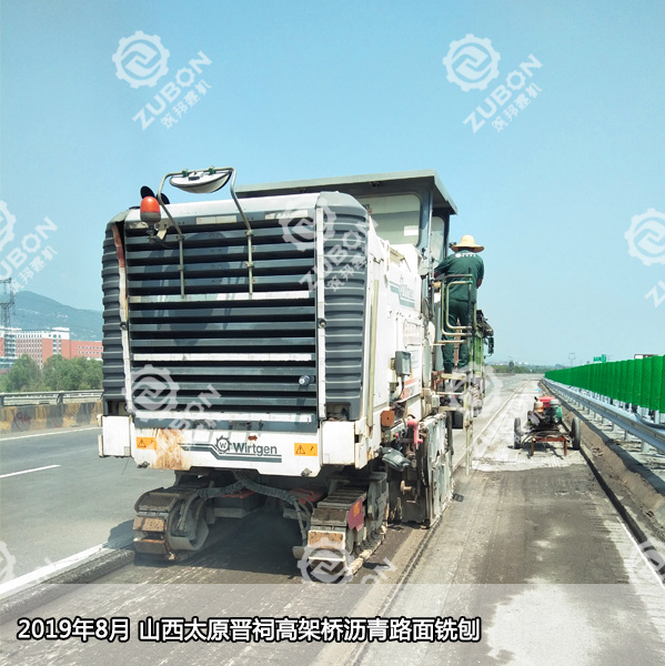 2019年8月,湖南筑邦維特根銑刨機W2000在山西省太原市晉源區晉祠鎮晉祠高架橋進行瀝青路面銑刨施工,深度9CM.