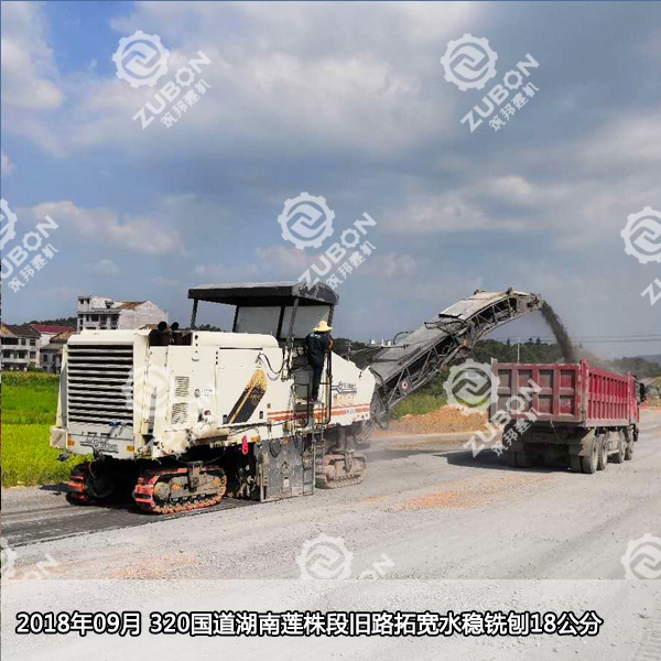 2018年09月 湖南320國道蓮株段舊路拓寬水穩銑刨18公分,混凝土路面銑刨,2米銑刨機出租。