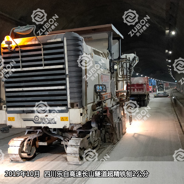 四川樂自高速公路長山隧道抗滑性能提升改造精銑刨2公分,此次用到的銑刨機(jī)是維特根精銑刨機(jī)W2000。隧道精銑刨