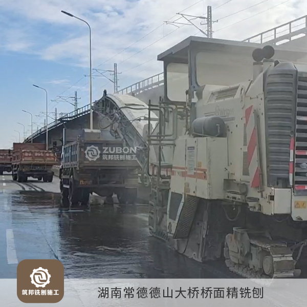 橋面翻新銑刨分為兩部分進行,首先普通銑刨1cm去除橋面的破損及開裂問題,然后再換672把刀頭的精銑鼓精銑刨1cm,銑刨總面積為56000㎡。該項目為常德市2022年重點工程,我司高度重視,特安排有15年現場施工管理經驗的常德本地人陳億清進行整個項目的統籌管理與現場對接,全力以赴保質保量完成任務。