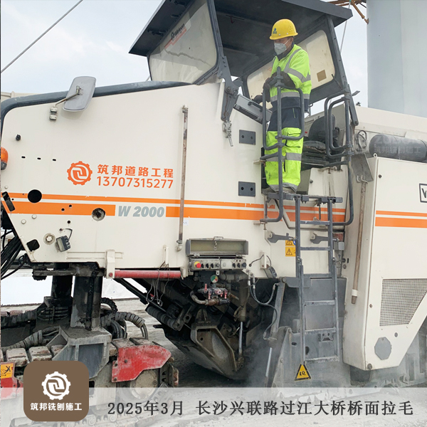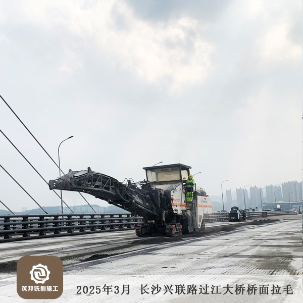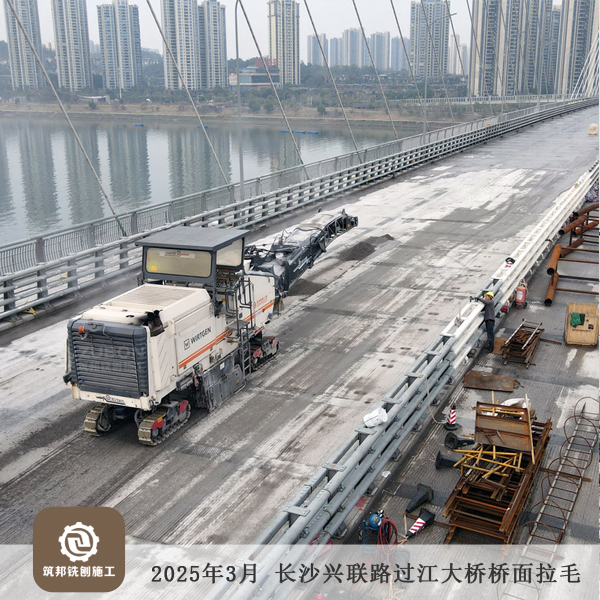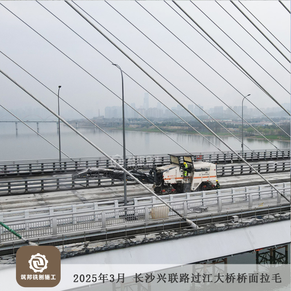 2025年3月 長沙長益復線至興聯路大通道(過江段)項目橋面精銑刨15萬㎡順利完工。