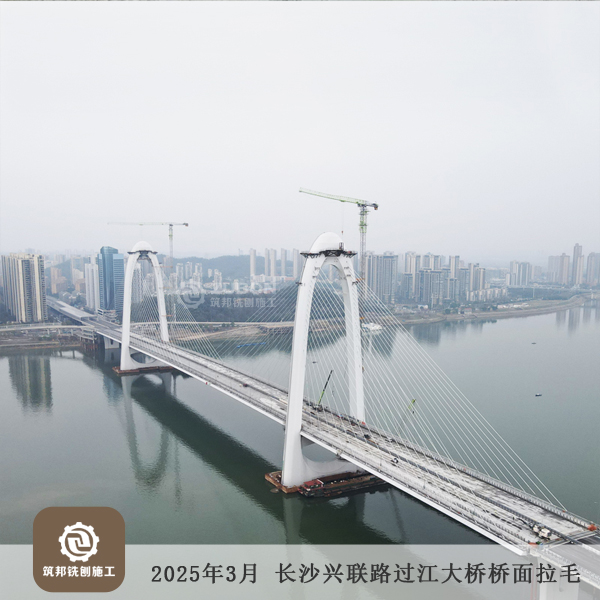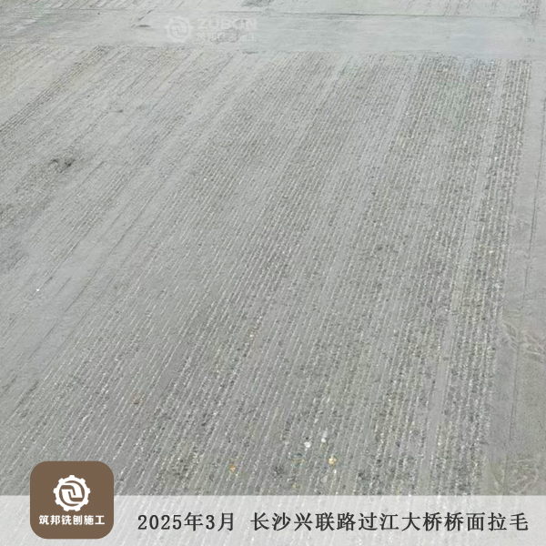 2025年3月 長沙長益復線至興聯路大通道(過江段)項目橋面拉毛15萬㎡順利完工