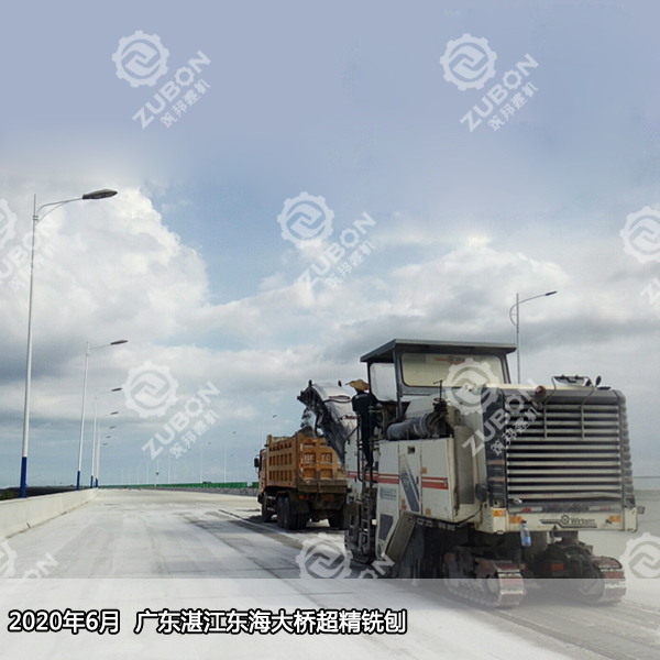 2020年6月廣東湛江東海大橋超精銑刨,此次用到的是維特根精銑刨機(jī)W2000,搭配700多把刀頭精銑鼓,精銑刨后清掃完畢直接開放交通。