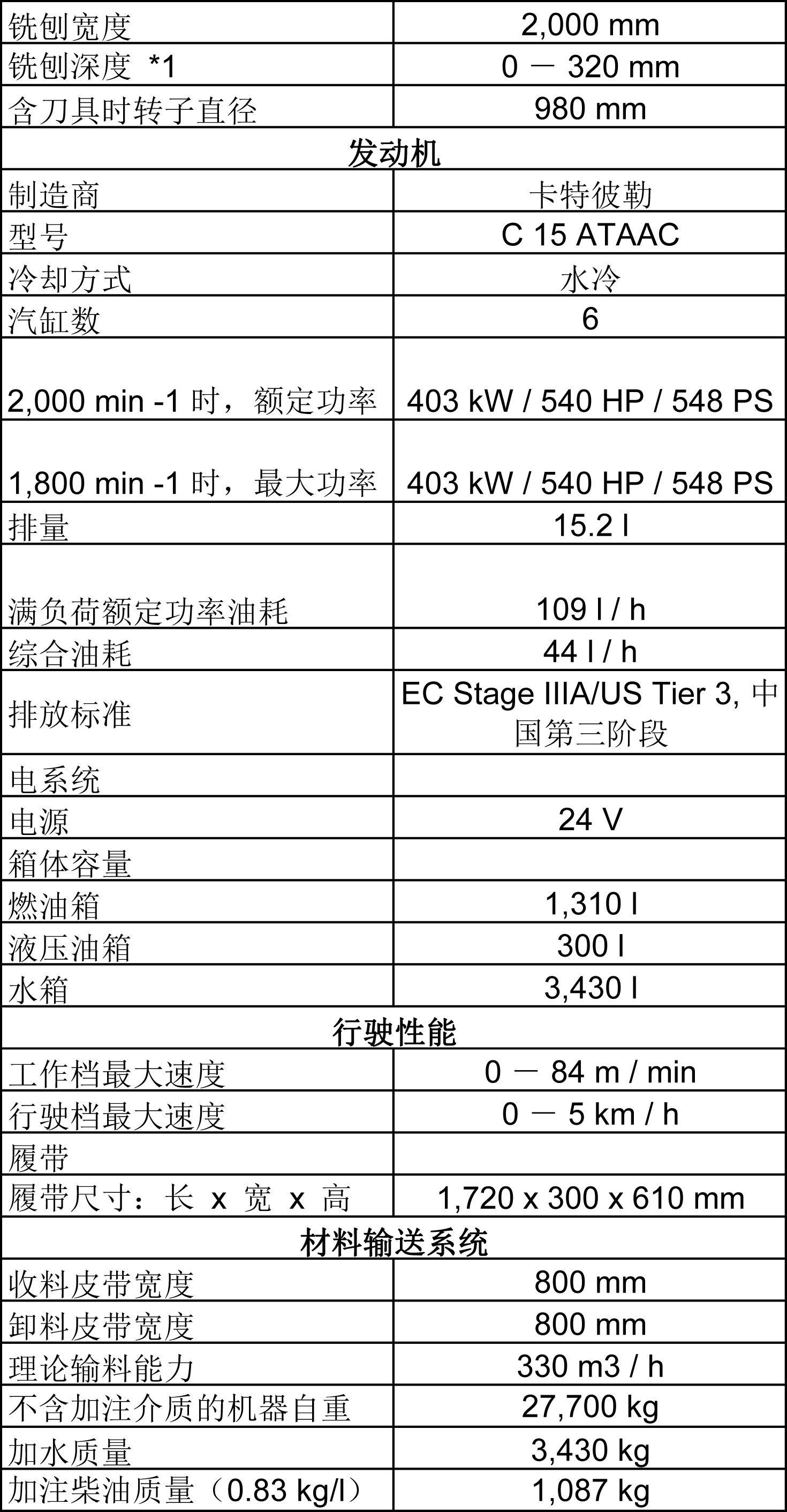 2 m 寬的銑刨寬度及強勁的發動機,使W2000能夠經濟的完成大型銑刨工程,銑刨深度達320 mm。這一超大銑刨深度使機器能夠一次性銑刨整個路面結構層。不論是分層銑刨、還是整個結構層銑刨,該款大型銑刨機,均駕輕就熟。即使對于市內道路維修等中小型銑刨工程,該機較高的產量及緊湊型設計,也使之能夠快速順利的完成。
